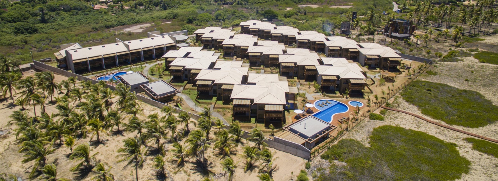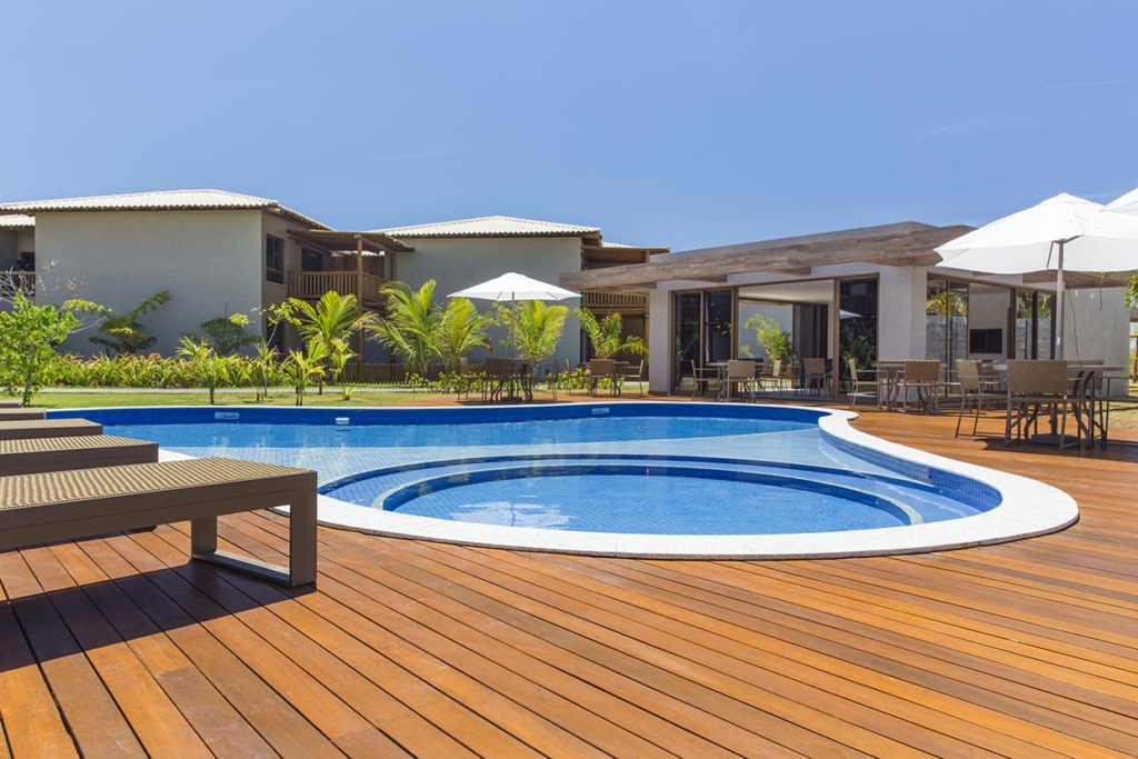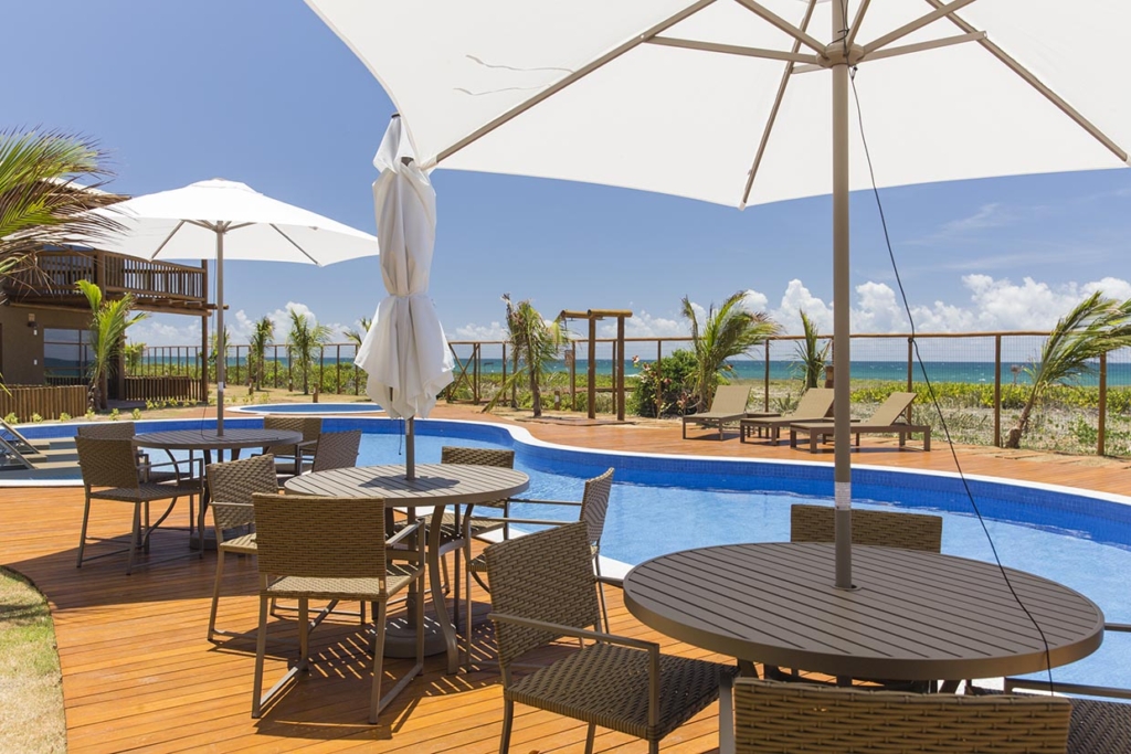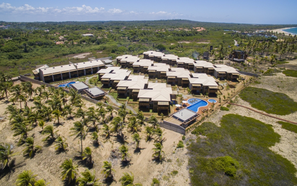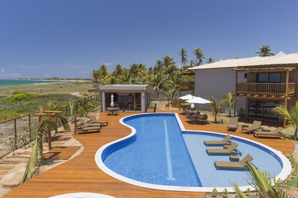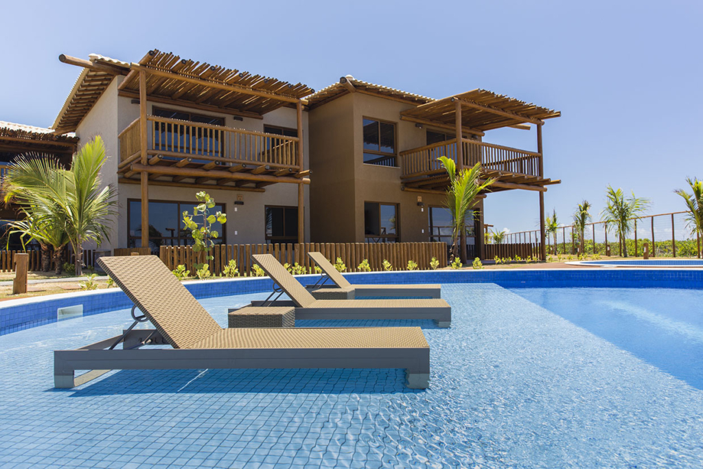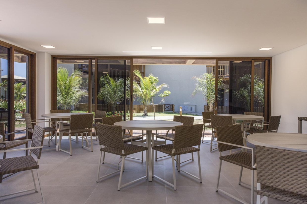Condomínio Residencial com 76 bangalôs duplex de 2 e 3 quartos, garden privativo, piscina vista mar com deck molhado, academia, restaurante, espaço gourmet, parque infantil, 2 vagas cobertas.
